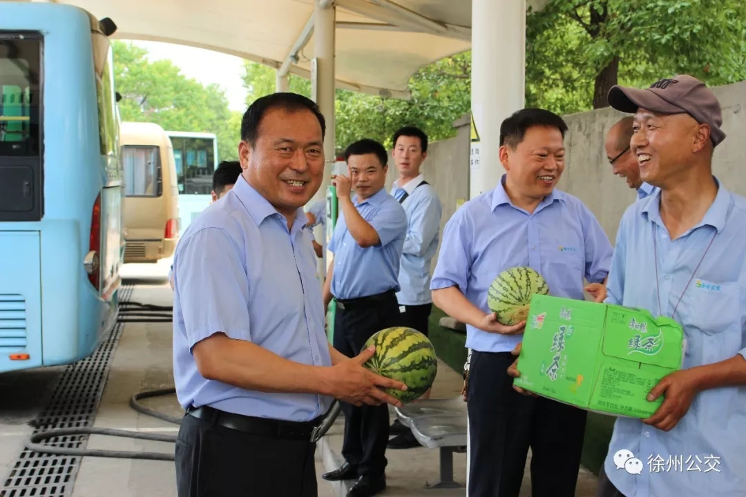 為切實(shí)關(guān)心關(guān)愛堅守一線的公交員工,徐州公交認(rèn)真開展“夏日送清涼”活動,7月22日上午11:45,領(lǐng)導(dǎo)班子分4組深入站臺、調(diào)度室、修理車間等17處基層一線,為奮戰(zhàn)一線、堅守崗位的員工送上涼茶、西瓜等清涼物資,向冒著高溫酷暑、辛勤工作的一線員工表示敬意和慰問,叮囑他們落實(shí)好各項防暑降溫措施,確保在高溫環(huán)境下市民能正常清涼出行。