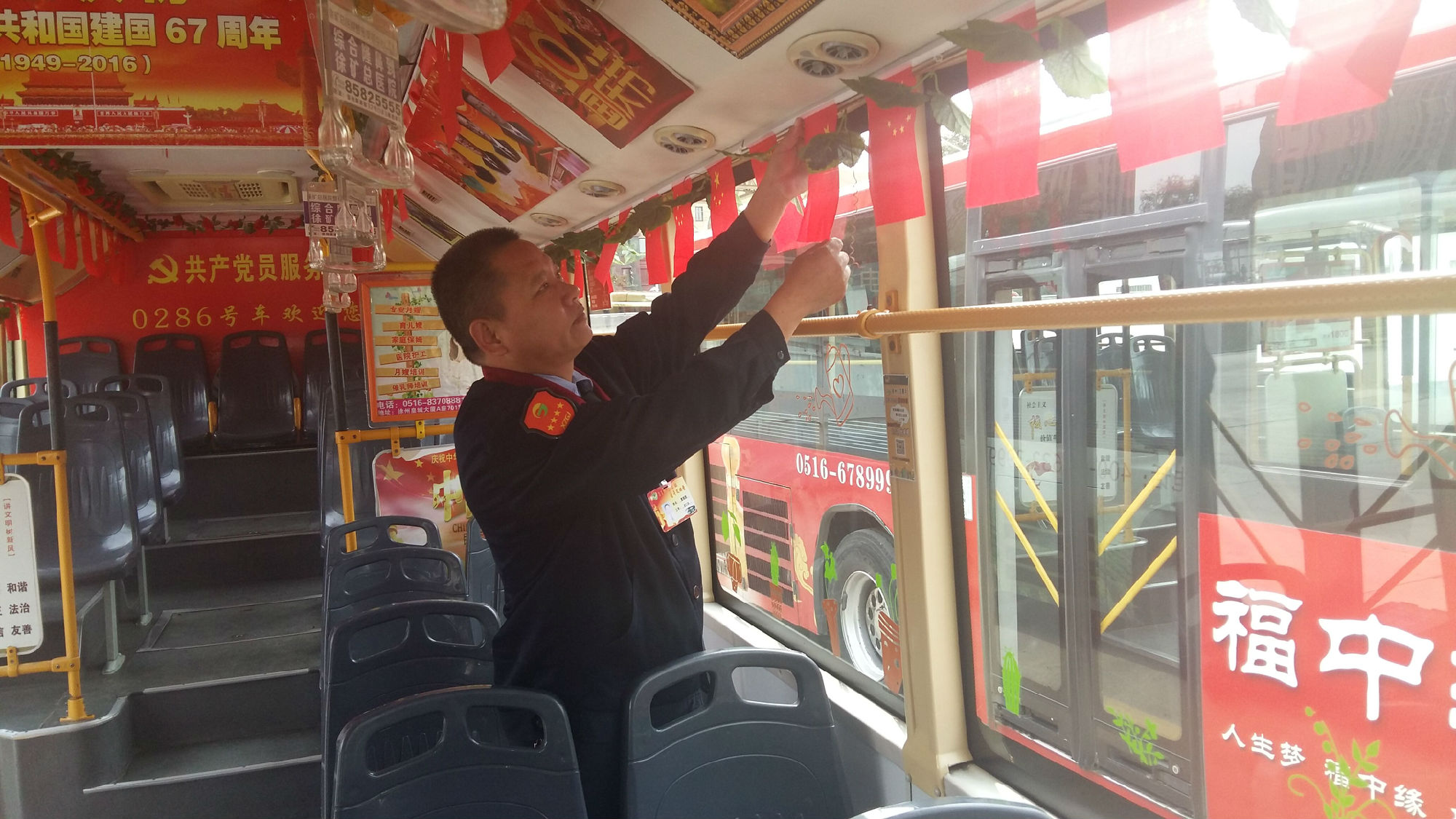 公交駕駛工作平凡、枯燥,但曹瑞國(guó)愛(ài)動(dòng)腦、喜創(chuàng)新,總會(huì)給乘客不一樣的驚喜,感受不一樣的出行服務(wù)。適逢節(jié)日、活動(dòng),他總會(huì)換著花樣地自掏腰包,給車(chē)上乘客一個(gè)驚喜:春節(jié),購(gòu)置小紅燈籠掛滿整個(gè)車(chē)廂,給乘客帶來(lái)濃濃的年味;母親節(jié),他準(zhǔn)備了100支康乃馨、祝???,送給“媽媽級(jí)”女乘客,道上一聲由衷的問(wèn)候;今年七一,為慶祝建黨95周年,他準(zhǔn)備了95面黨旗,95本黨章,以及黨徽、紀(jì)念章給乘客,并在車(chē)廂廣播入黨宣言、革命紅歌;922日宣傳世界無(wú)車(chē)日,他制作了10個(gè)卡通宣傳牌,加班安裝在車(chē)廂四周,號(hào)召市民選用綠色交通工具出行,減少城市污染;十一,他將一百面國(guó)旗掛在車(chē)廂內(nèi),被媒體稱(chēng)為“國(guó)旗哥”;10月9日重陽(yáng)節(jié),為老年乘客發(fā)放免費(fèi)鞋墊……