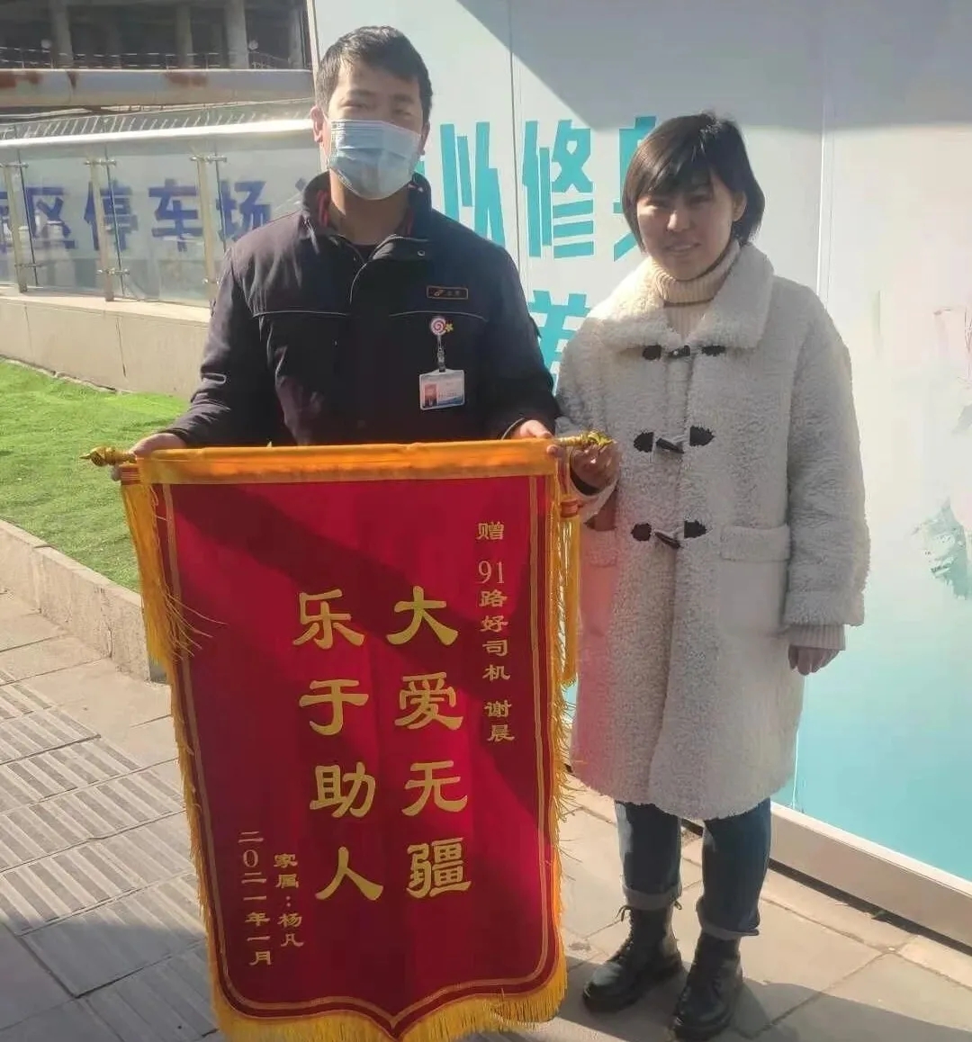 2021年1月18日上午10時(shí)左右,市民楊女士急匆匆地走向彭城路站臺(tái),她剛到站臺(tái)就握著91路車駕駛員謝晨的手不停地道謝。到底發(fā)生了什么事呢?