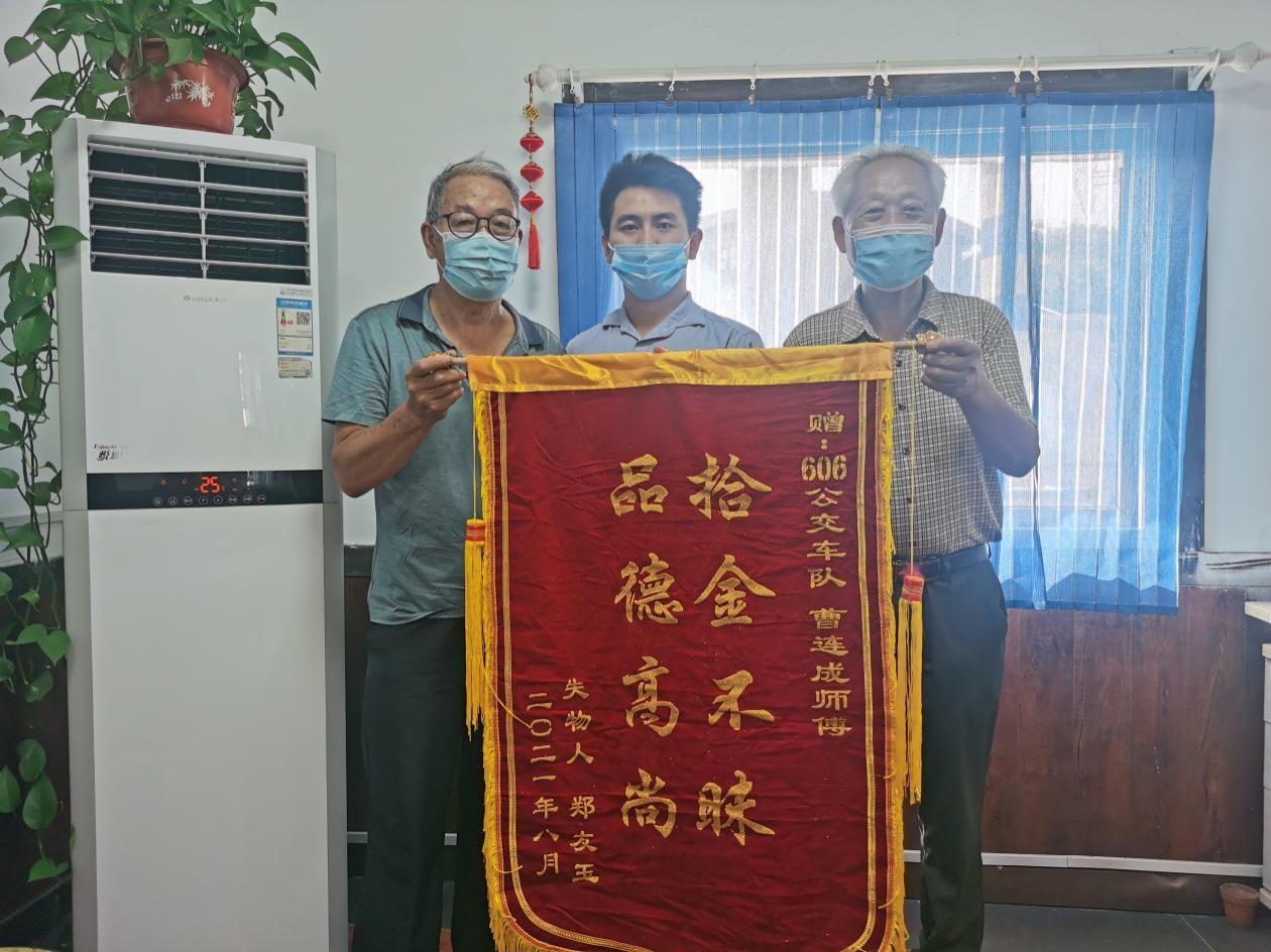 830日中午11點(diǎn)左右,市民鄭先生與同伴在大福源乘坐606路公交車趕往九七醫(yī)院就醫(yī),到醫(yī)院后發(fā)現(xiàn)錢包丟,鄭先生萬分著急,在同伴的提醒下,他來到606路韓山調(diào)度室尋找失物。果不其然,鄭先生的錢包被駕駛員曹連成師傅送到調(diào)度室妥善保管。鄭先生萬分感謝說道:錢包里除了現(xiàn)金和各類銀行卡外,還有醫(yī)保卡、社???,補(bǔ)辦十分麻煩,咱們司機(jī)師傅真是幫了大忙。”91日,鄭先生特意送來錦旗表達(dá)謝意。