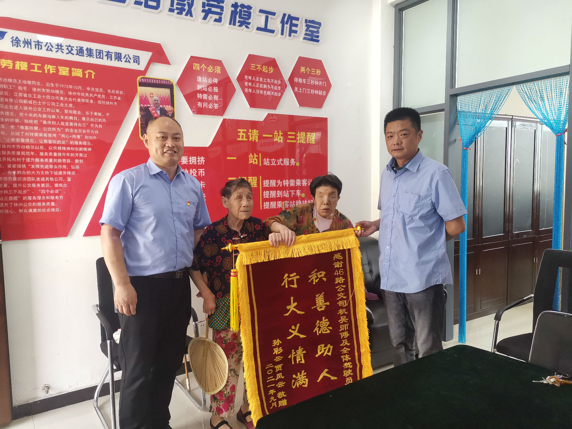 在國(guó)慶節(jié)的前一天,新城公司接待了兩位特殊的老人,她們手里拿著導(dǎo)盲棒,走路顫顫巍巍的,懷里緊緊抱著一面嶄新的錦旗。
