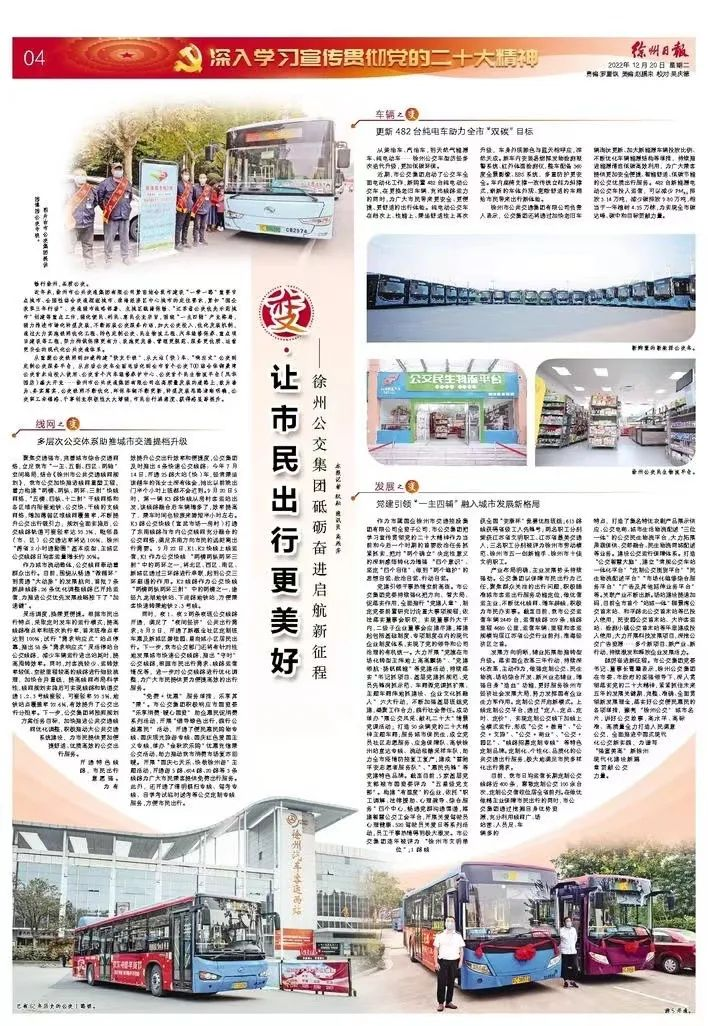 1220日《徐州日報》04版刊登文章《變.讓市民出行更美好——徐州公交集團(tuán)砥礪奮進(jìn)啟航新征程》