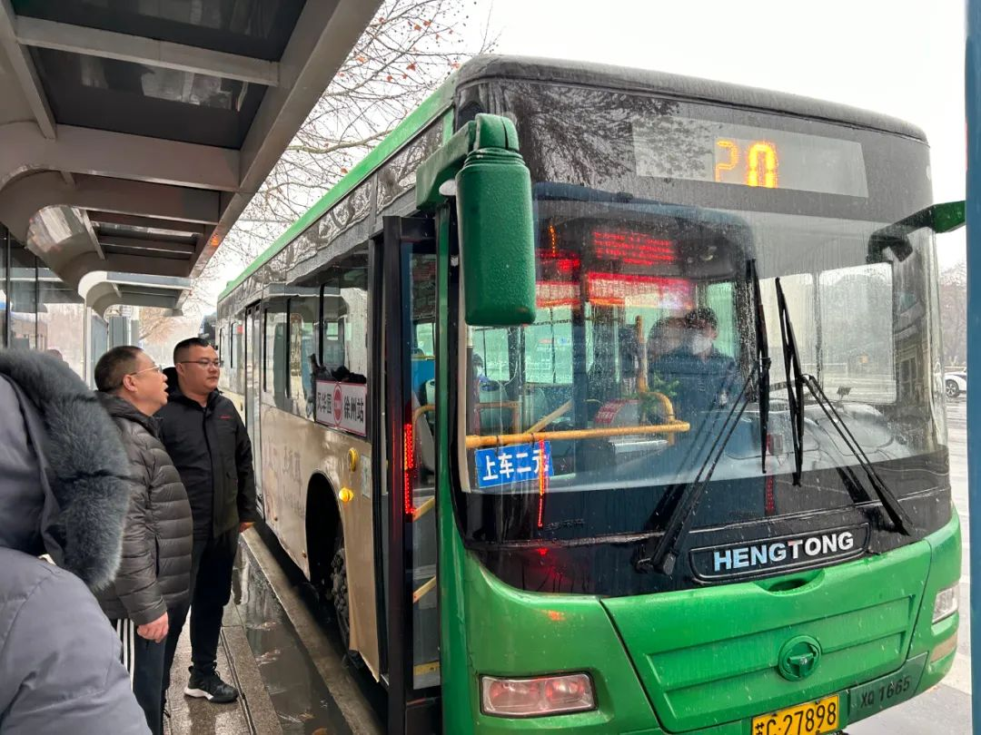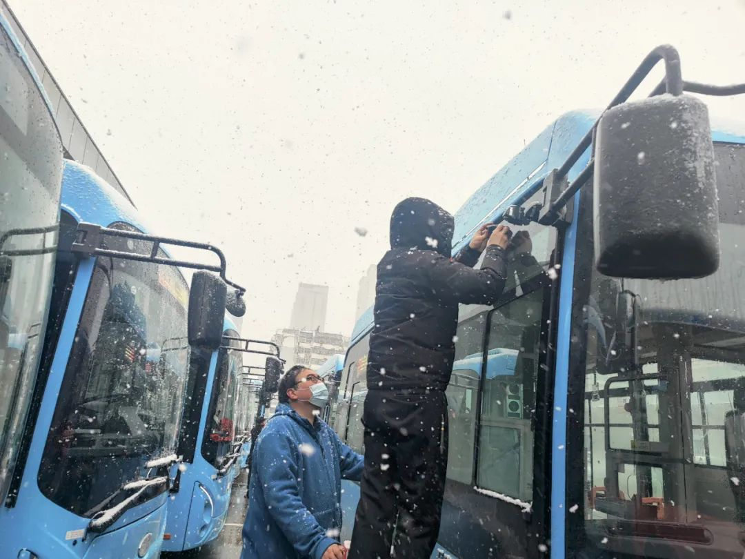 1月14日上午,徐州市氣象臺發(fā)布道路結(jié)冰黃色預警[Ⅲ級/較重],氣溫驟降,徐州迎來了2023年第一場冬雪。面對寒潮雨雪冰凍惡劣天氣,公交集團立即啟動特殊天氣應(yīng)急預案,集團黨委委員、副總經(jīng)理丁玉華帶領(lǐng)安全環(huán)保部人員上線檢查,基層單位分管安全負責人以雪為令,多措并舉做好寒潮雨雪大風天氣公交安全運營工作,保障市民安全便捷出行。