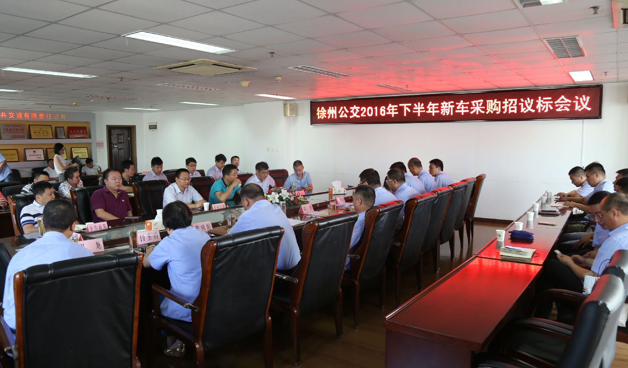 8月26日,公司召開下半年新車采購招標,6家客車廠應邀參加本次招議標會議,分別是北汽福田、重慶恒通、聊城中通、蘇州金龍、揚州亞星、鄭州宇通。本次招議標采用議標方式進行,共計采購135臺純電動空調(diào)公交車,首先抽簽確定順序,然后依次逐家對客車廠家進行商務(wù)談判,確認合同主要條款。公司財務(wù)部、營運部、機務(wù)技術(shù)部負責人及7家運營公司經(jīng)理參加了本次招標會,公司紀委全程監(jiān)督。此外,公司還對三堡公交駕校場地建設(shè)進行了招標,共有4家建筑資質(zhì)合格的單位前來應標。