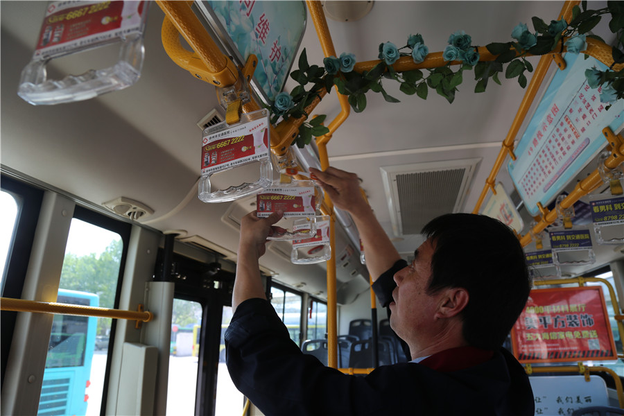 4月19日下午3點(diǎn)多,“嚓、嚓、嚓,嚓、嚓、嚓!”筆者在韓山停車場(chǎng)偶然間發(fā)現(xiàn)一輛49路車上一個(gè)忙碌的身影,正在拿著黃色牙刷在刷扶手。走上車,哦,原來是市勞模、49路四星級(jí)駕駛員王博正在利用休停時(shí)間用牙膏刷洗拉手,別說,這個(gè)小竅門還真不錯(cuò)!經(jīng)過王師傅的辛勤刷洗,原本發(fā)黑的黃色拉手布煥然一新!配詩一首: