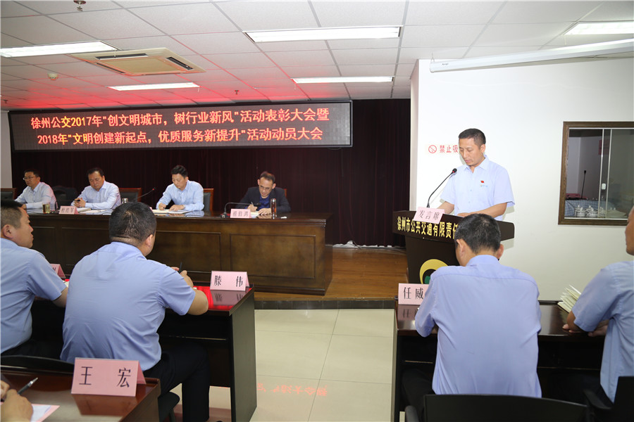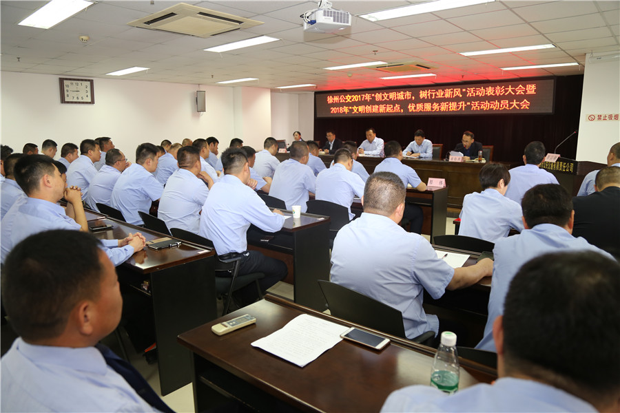 5月10日上午,有限公司召開(kāi)“2017‘創(chuàng)文明城市、樹(shù)行業(yè)新風(fēng)’總結(jié)表彰暨2018‘文明創(chuàng)建新起點(diǎn),優(yōu)質(zhì)服務(wù)新提升’活動(dòng)動(dòng)員大會(huì)”,主要任務(wù)是對(duì)全公司文明城市創(chuàng)建常態(tài)長(zhǎng)效工作進(jìn)行部署,動(dòng)員全體干部員工認(rèn)清形勢(shì)、再鼓干勁,開(kāi)啟文明創(chuàng)建新征程,再創(chuàng)優(yōu)質(zhì)服務(wù)新提升。公司董事長(zhǎng)、總經(jīng)理杜紅軍,工會(huì)主席竇同銀,調(diào)研員張同剛、祖伯鴻,相關(guān)部室負(fù)責(zé)人,營(yíng)運(yùn)公司經(jīng)理、書(shū)記、服務(wù)主管,車隊(duì)長(zhǎng)、先進(jìn)個(gè)人代表等87人參加了會(huì)議。
