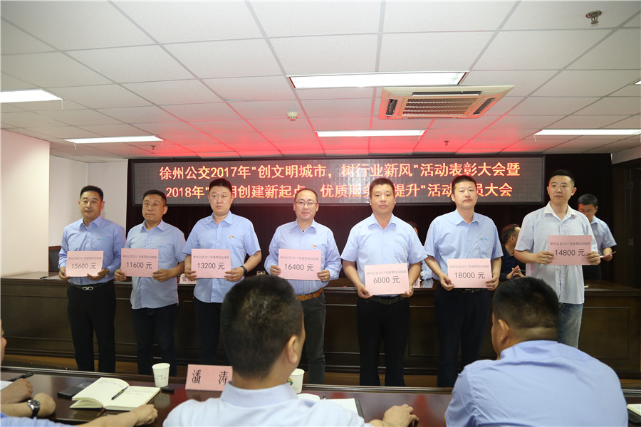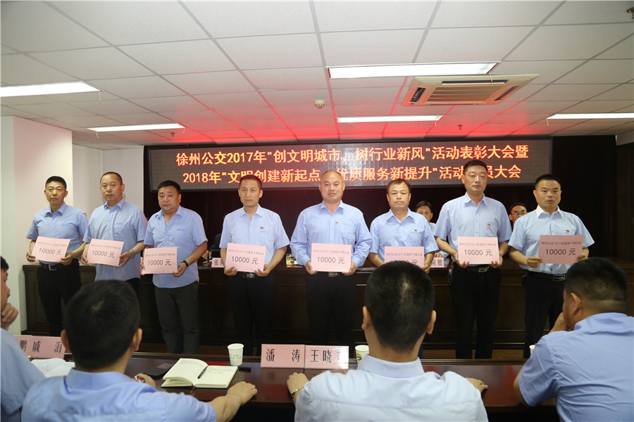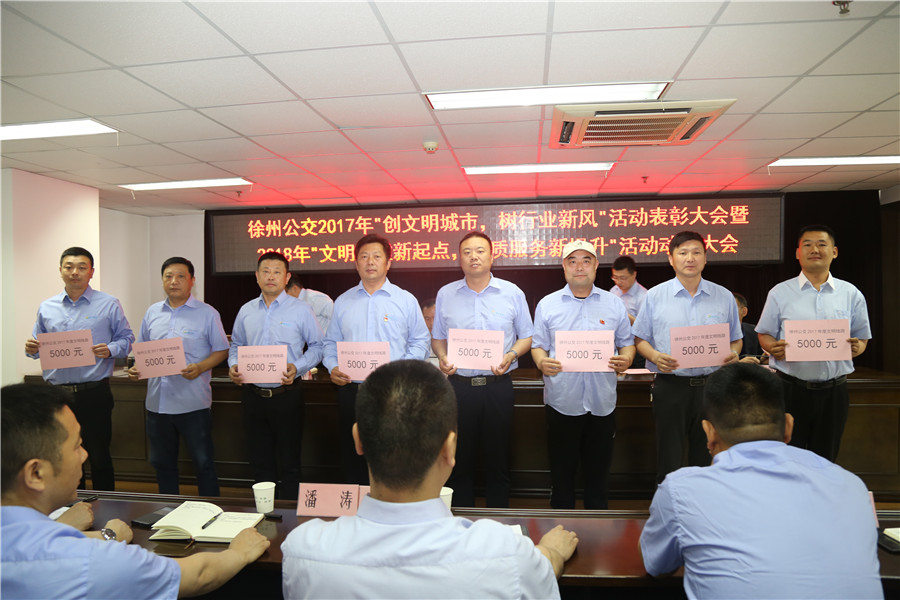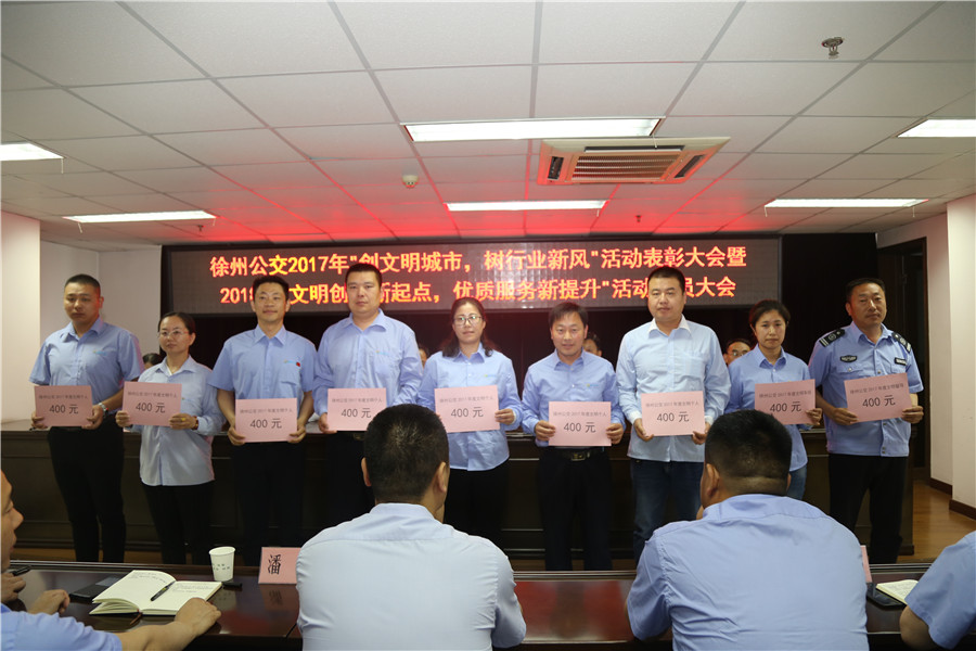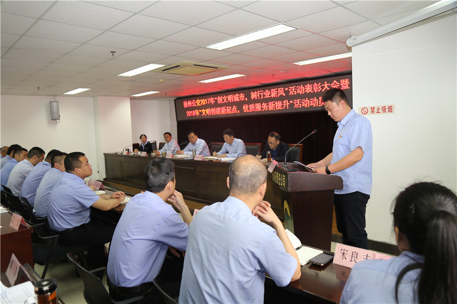 調(diào)研員祖伯鴻宣讀了《關(guān)于表彰2017年度“創(chuàng)文明城市、樹(shù)行業(yè)新風(fēng)”先進(jìn)集體和先進(jìn)個(gè)人的決定》。大會(huì)對(duì)獲得榮譽(yù)的先進(jìn)集體和個(gè)人代表進(jìn)行了頒獎(jiǎng)。新區(qū)公司黨支部書(shū)記李強(qiáng)、順通公司三車隊(duì)隊(duì)長(zhǎng)鹿小可、11路駕駛員曹瑞國(guó)等三位同志作了大會(huì)交流發(fā)言。