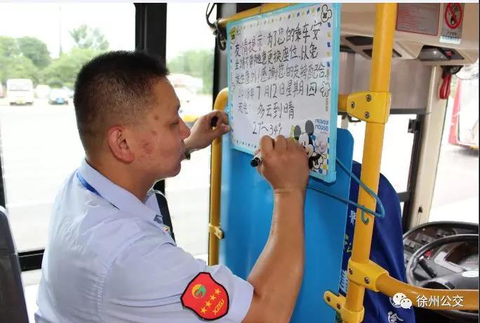 原來(lái)他已養(yǎng)成了習(xí)慣,在他的駕駛室后方掛著一塊白板,寫著乘車的溫馨提示語(yǔ)和天氣情況。每天他都會(huì)記錄下當(dāng)天的天氣情況:“為了您的乘車安全,請(qǐng)不要隨意更換座位。感謝您的支持!2018年7月12日星期四,多云到晴,27~34攝氏度”,“特別是老年人、孩子,開車時(shí)換位子太危險(xiǎn)了?!毖λ山忉尩?。